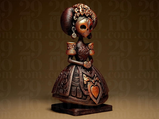 Dia de Muertos Woman Figurine: 3D Printed, Hand Painted Halloween Decor